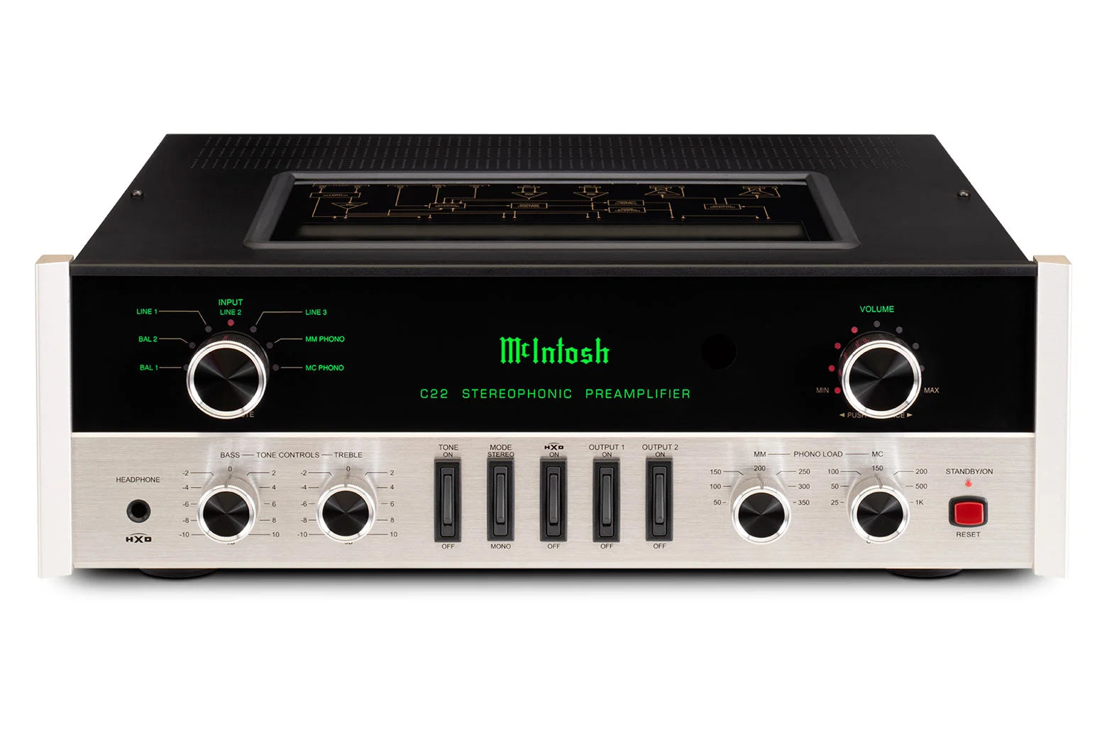 McIntosh C22 - yra aukštos klasės dviejų kanalų lempinis stiprintuvas, sukurtas kaip legendinio C70 modelio įpėdinis, bet su ikonišku C22 dizainu. Jame naudojamos 6 vakuuminės lempos (1x 12AT7 ir 5x 12AX7A), matomos pro stiklinį viršų.