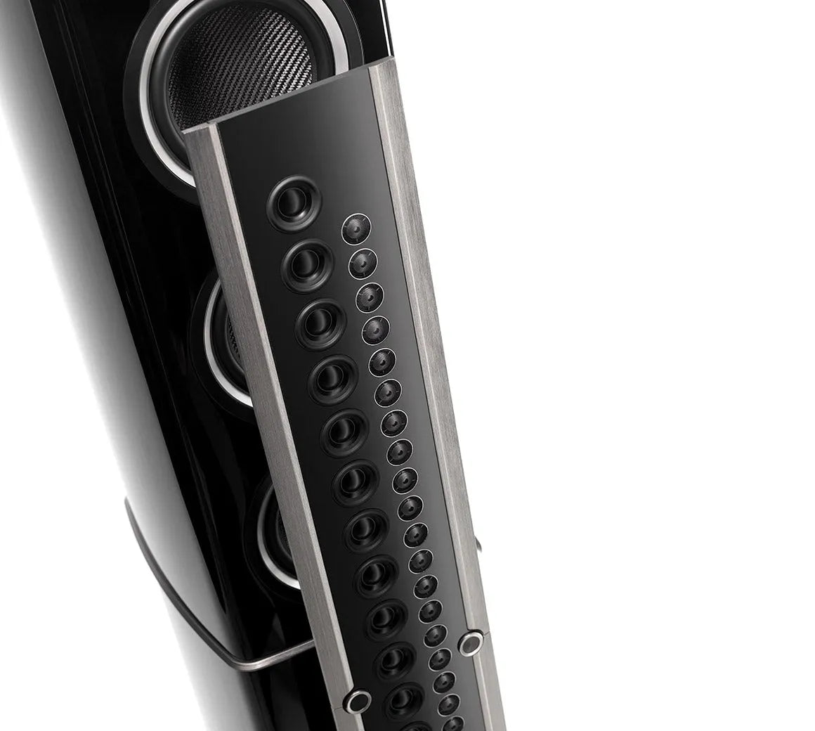 A 4-way speaker, the XRT2.1K produces excellent sound quality at all levels of the human audio spectrum. The unique left and right speaker each use a total of 81 drivers consisting of (6) 8” woofers, (2) 6.5” low frequency midranges, (28) 2” upper frequency midranges and (45) ¾” tweeters, to deliver a nearly unparalleled sound reproduction. The woofer and low frequency midrange drivers, housed in the large bass enclosure cabinet, are brand new designs that were specifically created for the XRT2.1K. Their extremely stiff yet lightweight diaphragms combined with a very long throw design ensures amazing extension on low frequencies. Located on the line array are the Aluminum–Magnesium upper frequency midrange and tweeter metal drivers, which have been specially customized for the XRT2.1K and feature neodymium magnets.