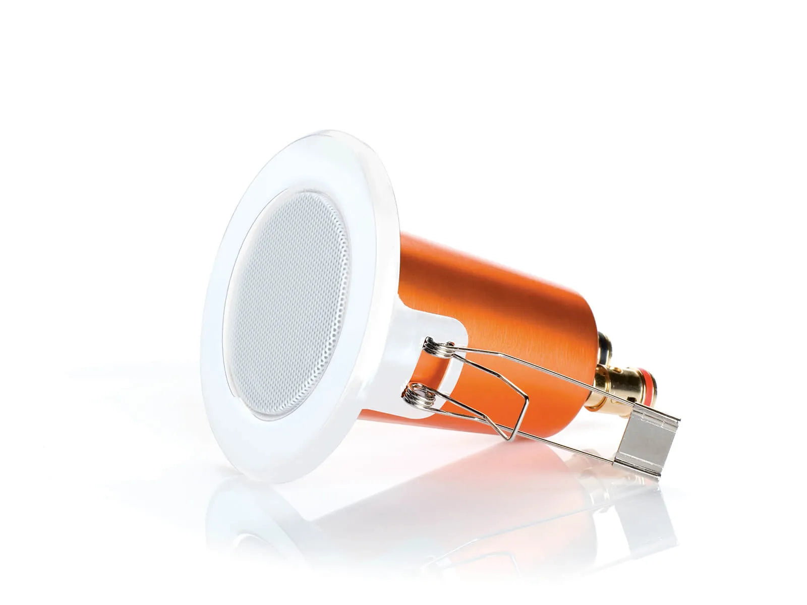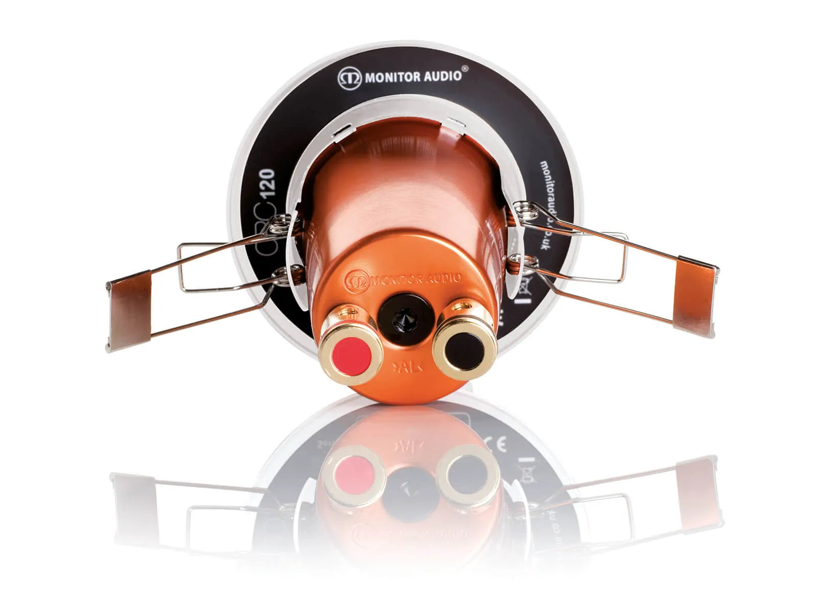 At only 80 mm (31/8 inches) diameter, Monitor Audio's CPC120 is a loudspeaker that offers extraordinary sound quality for a truly innovative application. Its precision engineered micro-design allows it to offer a surprisingly coherent and detailed performance from a standard halogen down-lighter hole. The CPC120 can be specified with three different grille bezel options.