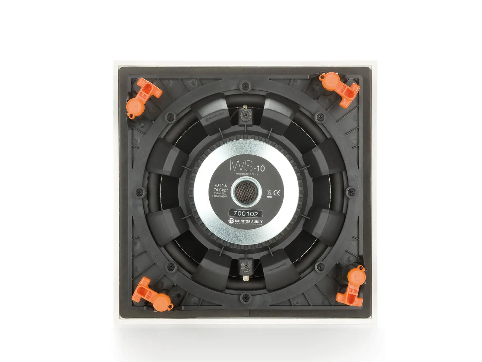 The IWS-10 subwoofer driver employs a rigid, flat 10” surface of 10 mm (3/8") RDT material derived from Monitor audio’s acclaimed ‘Platinum’ series of high-end speakers. A large vented pole helps to move air quickly, reducing power compression and increasing heat dissipation.