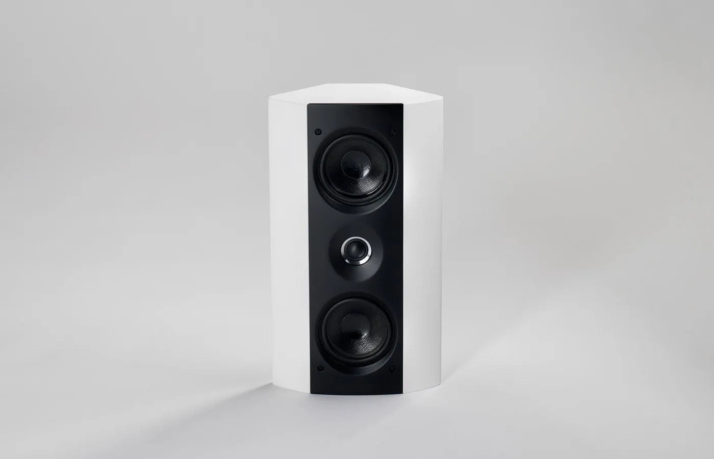 Employing a symmetrically angled shape that ensures no internal parallel surfaces exist, the enclosure is characterized by its lack of parallel surfaces that eliminates any detrimental internal resonances. The 1" fabric dome tweeter was designed by Sonus faber and delivers an exceptional wide dispersion of sound, while providing natural timbre and very detailed sound without creating listener fatigue. The front baffle of Wall secures 2 active 6" mid-woofers with Curv™ cones. The baffle is set apart by its curved form which produce a decidedly lively sound with perfectly coherent integration between the driver and the cabinet. The enclosure is also characterized by its angled sides and included wall mount bracket- a design solution that allows for flexible wall placement in the home theater or multi-room environment.