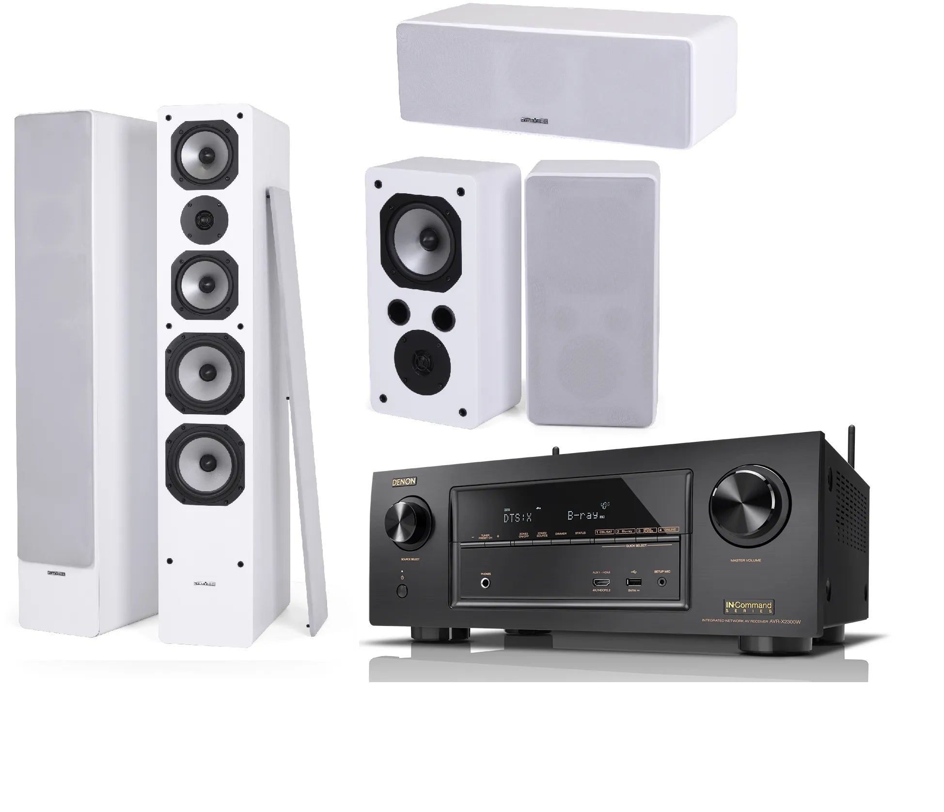 Gero garso namų kino komplektas su stiprintuvu Denon AVR-X2300W, bei kolonėlėmis M-65 (2vnt) / S-5 (2 vnt) / C-5 (1 vnt).