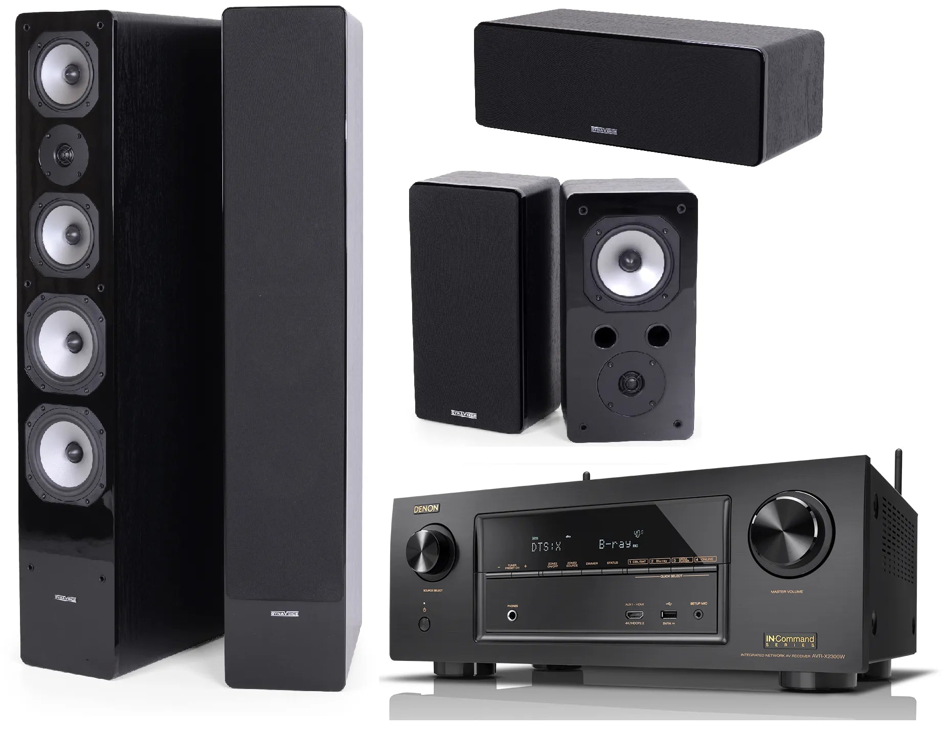 Namų kino komplektas - stiprintuvas Denon AVR-X2300W , su kolonėlėm Dynavoice Challenger M-65, C-5, S-5 EX (v.4) - Juoda - prieš pirkdami pasiteiraukite ar šią prekę turime sandėlyje, jei neturime ji gali būti užsakyta ir atvykti per 2-21 dieną.