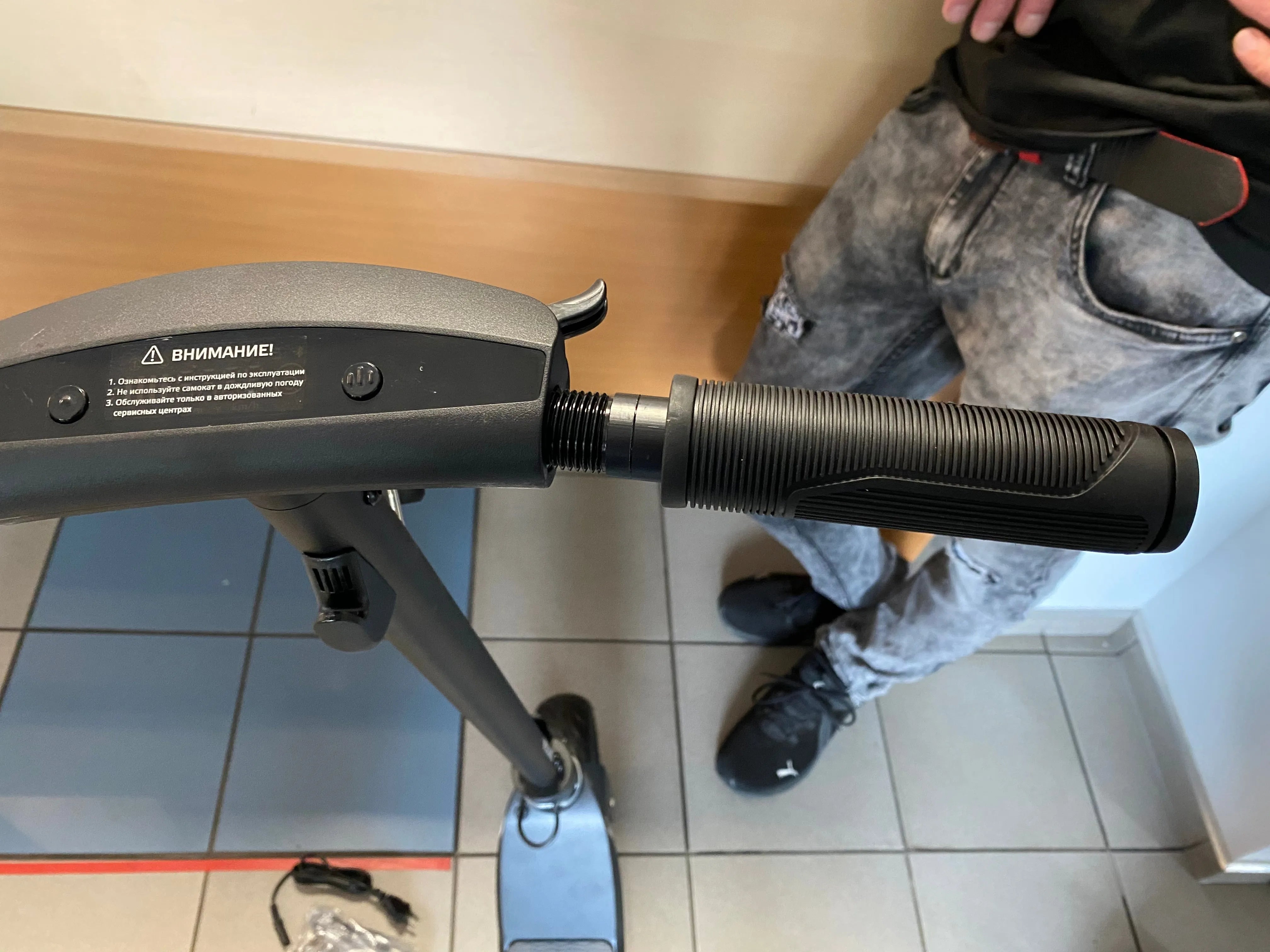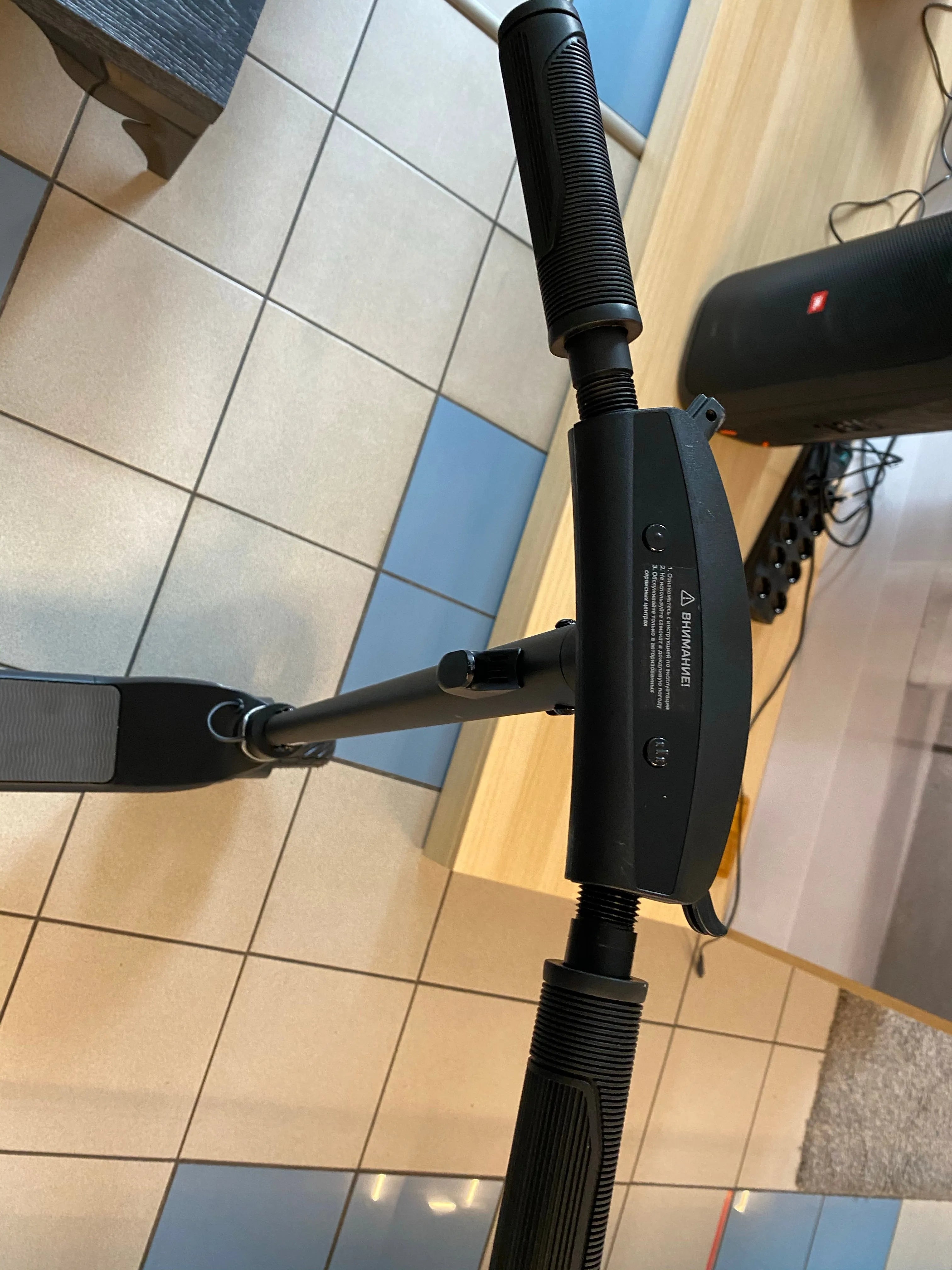 Folding the frame of the electric scooter takes place in just one action by means of a button located on the front of the steering column.