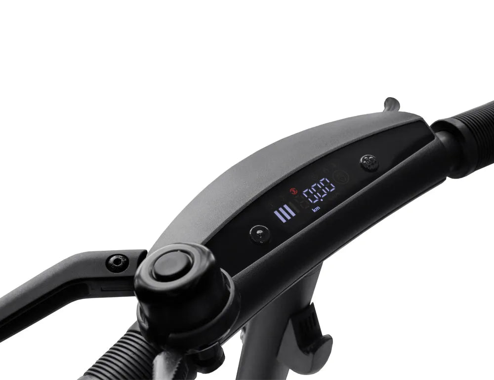 Informative display for displaying information about the status of the battery charge, the selected speed mode, current speed, distance traveled and the running status of the navigation lights.