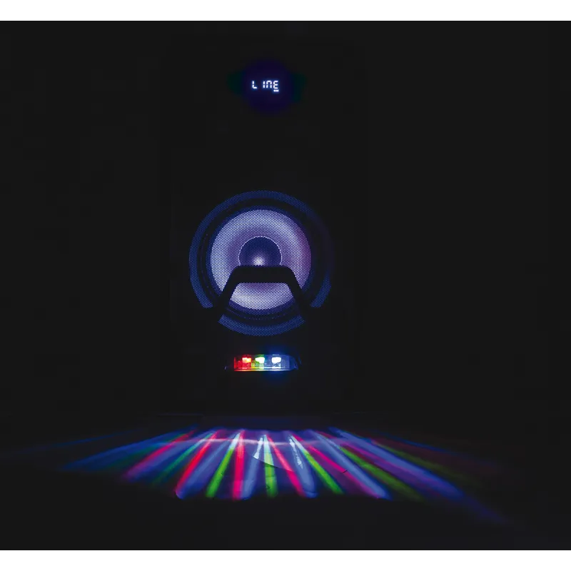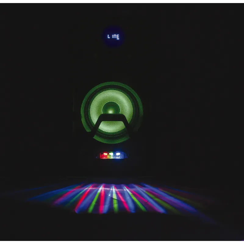 Nešiojama garso sistema su įmontuotu akumuliatoriumi, "Bluetooth" jungtimi, mikrofono ir gitaros įėjimais. LED diodais apšviestas žemų dažnių garsiakalbis užtikrina sodrų bosą, kurį dar galima sustiprinti "MEGA BASS" funkcija. Idealiai tinka vartotojams, kurie ieško kompaktiškos ir galingos nešiojamos "viskas viename" garso sistemos.