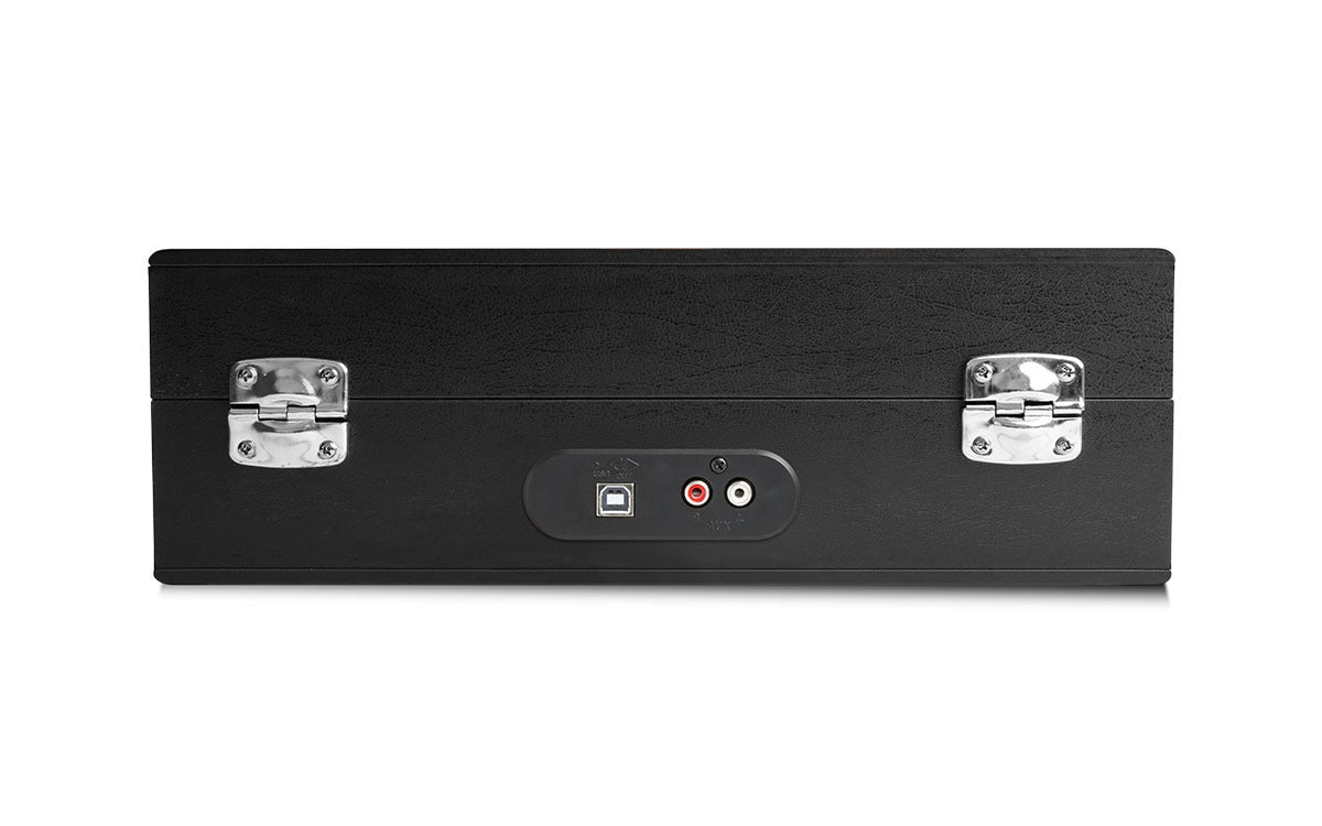 - 3-speed (33 1/3, 45 and 78 RPM) portable suitcase-style turntable