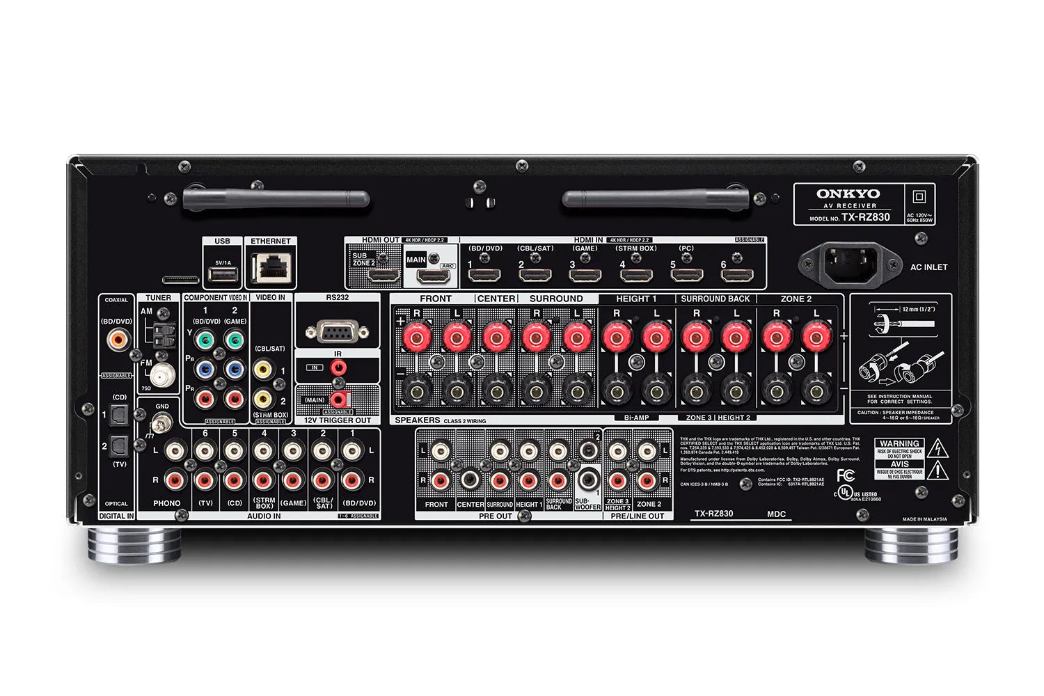 h-end approach to build and sound to the middle of our A/V receiver range. Our top-of-the-line high-current digital architecture is deployed with spectacular results: fluency, frequency range, transient response, and detail resolution are unassailable at the price. With sheer high-current power needed for edge-of-the-seat movie thrills and joyful stereo listening, the TX-RZ830 presents as a high-fidelity reference component loaded with connections needed for a custom install lasting well into the future.