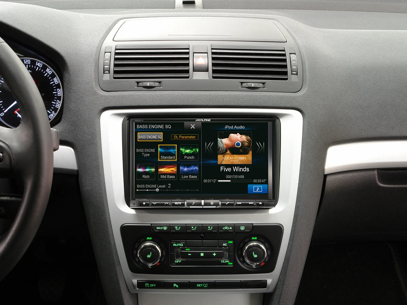 Sistema apjungia daugybę pažangiausių galimybių, įskaitant universaliąją Alpine TuneIt App programėlę su Facebook ryšiu.Puikią garso kokybę papildo didelės plėtros galimybės, įskaitant integruotus Bluetooth su valdymo balsu galimybėmis bei DAB/DAB+.