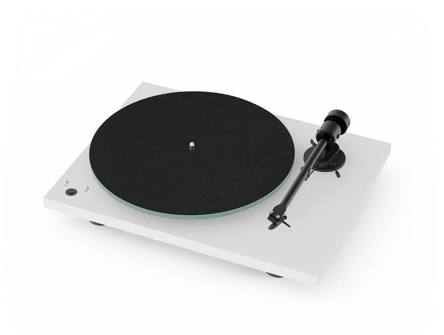 The stylish CNC-machined plinth of the T1 features no plastic parts and is carefully manufactured to ensure there are no hollow spaces inside, therefore avoiding unwanted vibrations within the chassis. Carrying this philosophy through the design, the glass platter is also a heavy, zero-resonance design. Finally, the purpose-chosen turntable feet also do a good job of isolating the T1 from ambient vibrations around your hi-fi system. In the T1 the motor drives a belt-system, attached to a newly designed sub-platter, which is mounted into an ultra-precise 0.001mm main bearing with a hardened steel axle and brass bushing. The tonearm new tonearm has an effective length of 8.6”. This one-piece aluminium tonearm also features low-friction bearings for absolute accuracy in use. The T1 comes with a pre-adjusted Ortofon OM 5E Moving Magnet cartridge and is ready to use right out of the box. Also super shielded, semi-symmetrical, low-capacitance Pro-Ject phono cables are included.