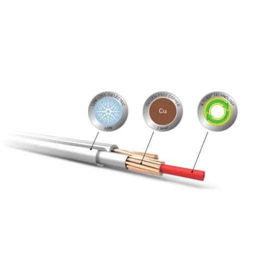 QED research has shown that low capacitance cables are generally preferred in listening tests over high capacitance counterparts and this is usually because low-loss dielectrics have been utilised. The use of LDPE and careful control of conductor spacing results in a cable with a very low capacitance per meter and a dissipation factor (loss tangent) of 0.0001 at 10 kHz.