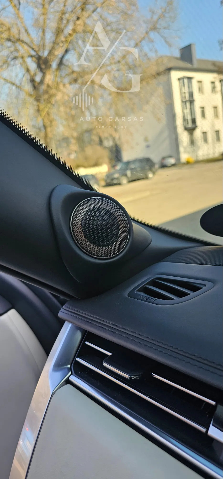 - Pagaminti podiumai priekiniuose statramsčiuose aukštų dažnių garsiakalbiams - aptraukti oda, kad išlaikytų prabangų automobilio interjero stilių.