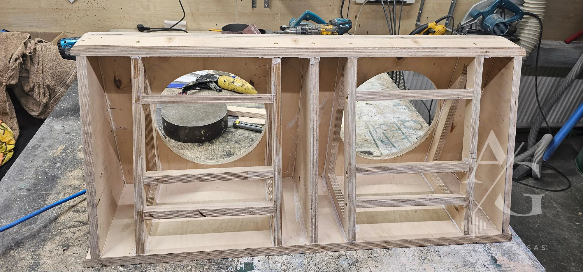 - Pagaminta uždara subwooferio dėžė su 30 cm Hertz garsiakalbiais, suteikianti tikslų ir galingą bosą.