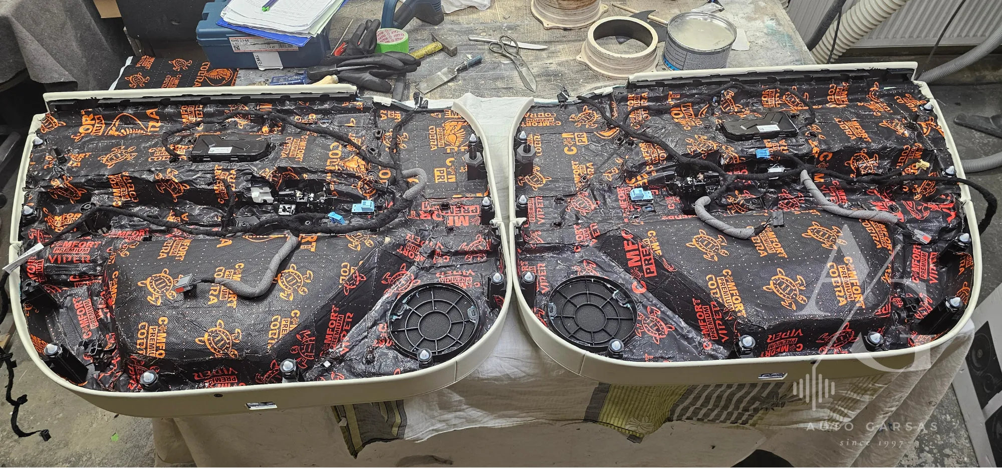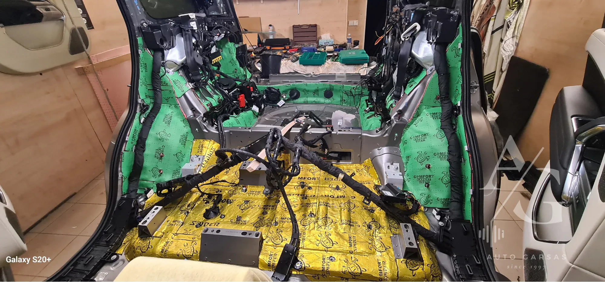 - Automobilis įrengtas pilna, aukšto lygio garso izoliacija, kuri ženkliai sumažina triukšmą ir leidžia sistemai atsiskleisti visu potencialu, bei prideda didesnį komfortą vairuojant.
