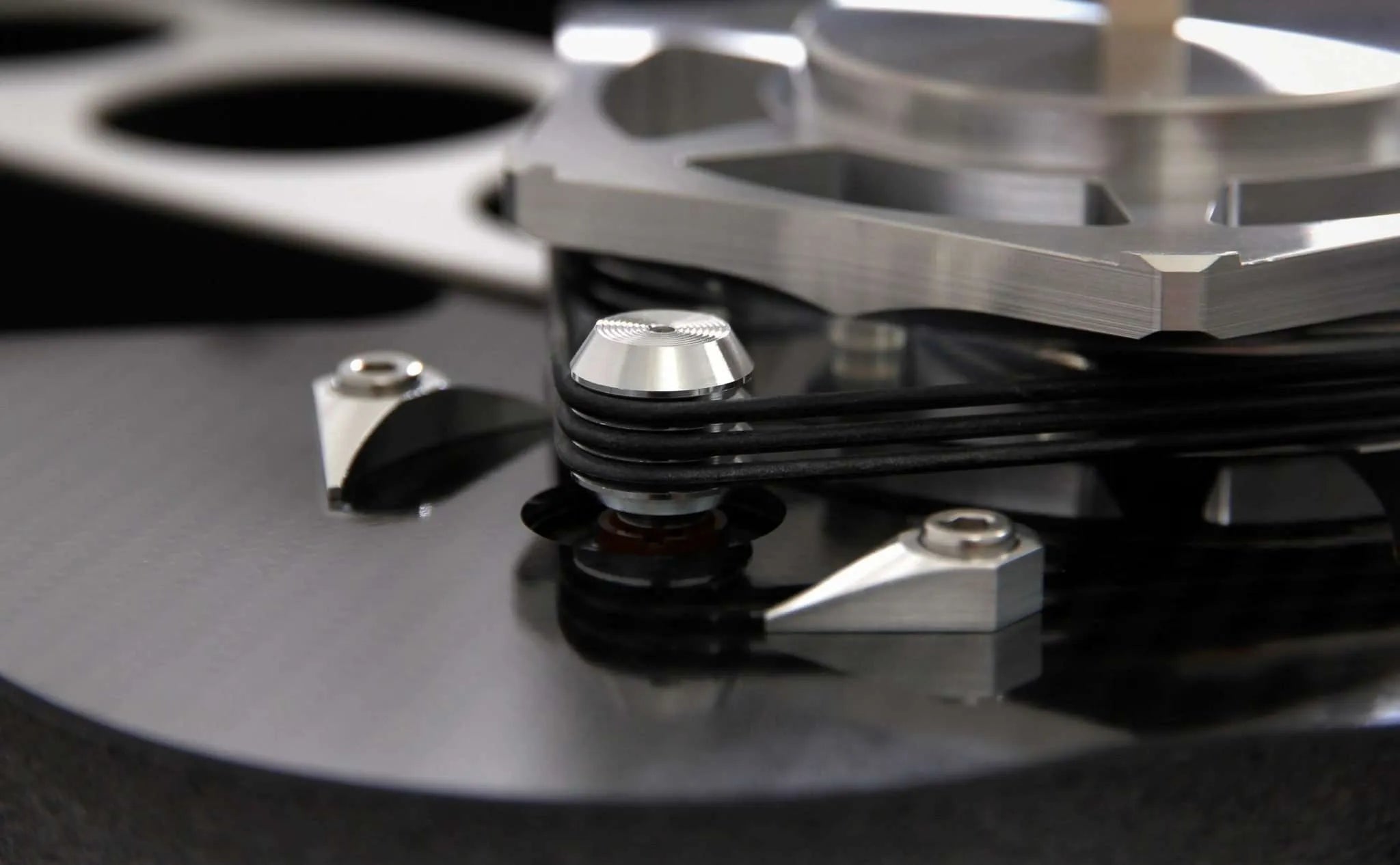 “Mass absorbs energy - lost energy equals lost music”! A super lightweight plinth combined with a ceramic top and bottom brace mounted specifically where the increased rigidity is required between the tonearm mounting and the main hub bearing. This forms a structurally sound, “stressed beam,” assembly.