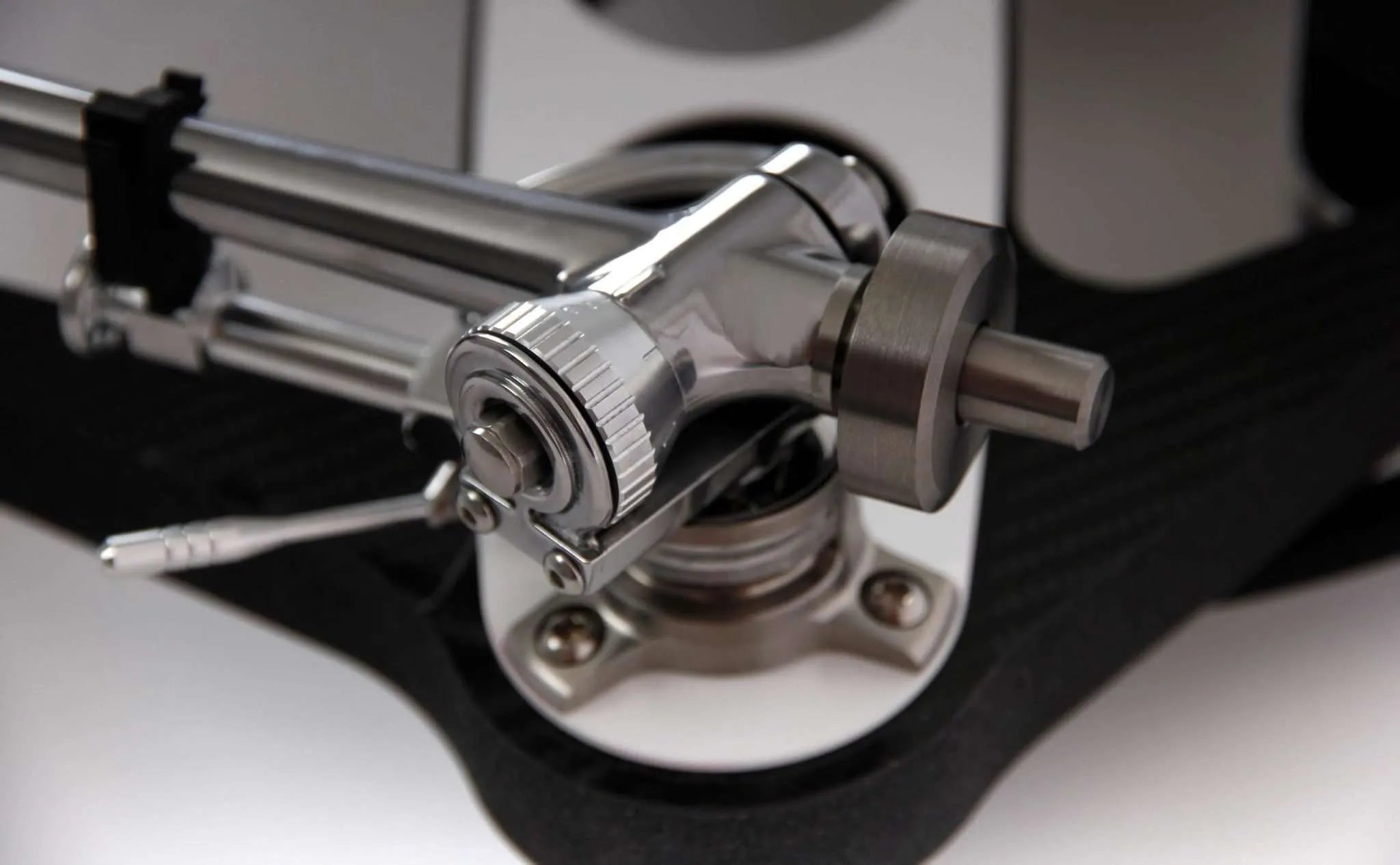 RB titanium tonearm: One piece titanium vertical bearing and Titanium vertical spindle assembly