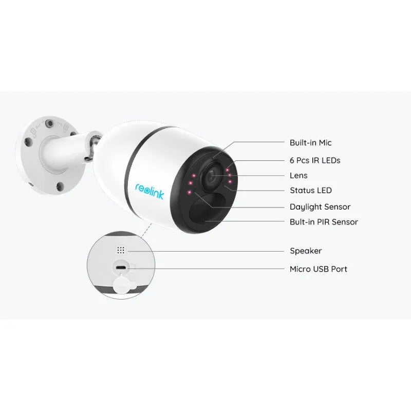 - Gali būti maitinama saulės energija - prijunkite kamerą prie Reolink saulės baterijos ir galėsite naudotis be pertraukos.