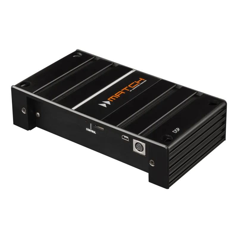 Easy to install, easy to adjust – the MATCH DSP is the perfect solution for smaller sound systems, which are driven by the original car radio. Its layout not only allows classical configurations (front L/R, rear L/R + subwoofer) but as well fully active front systems including subwoofer and center speaker. The versatile Aux input manages additional sources.
