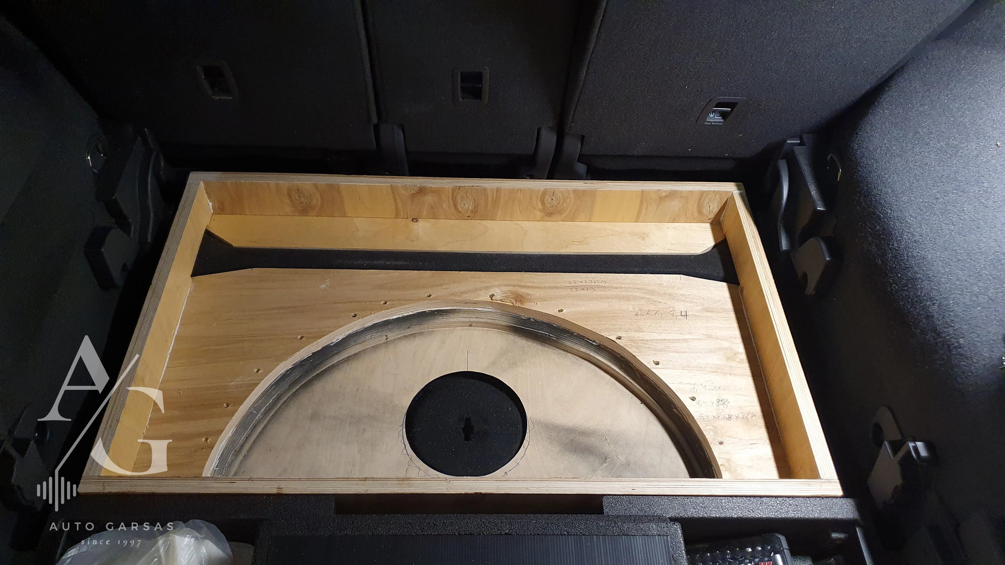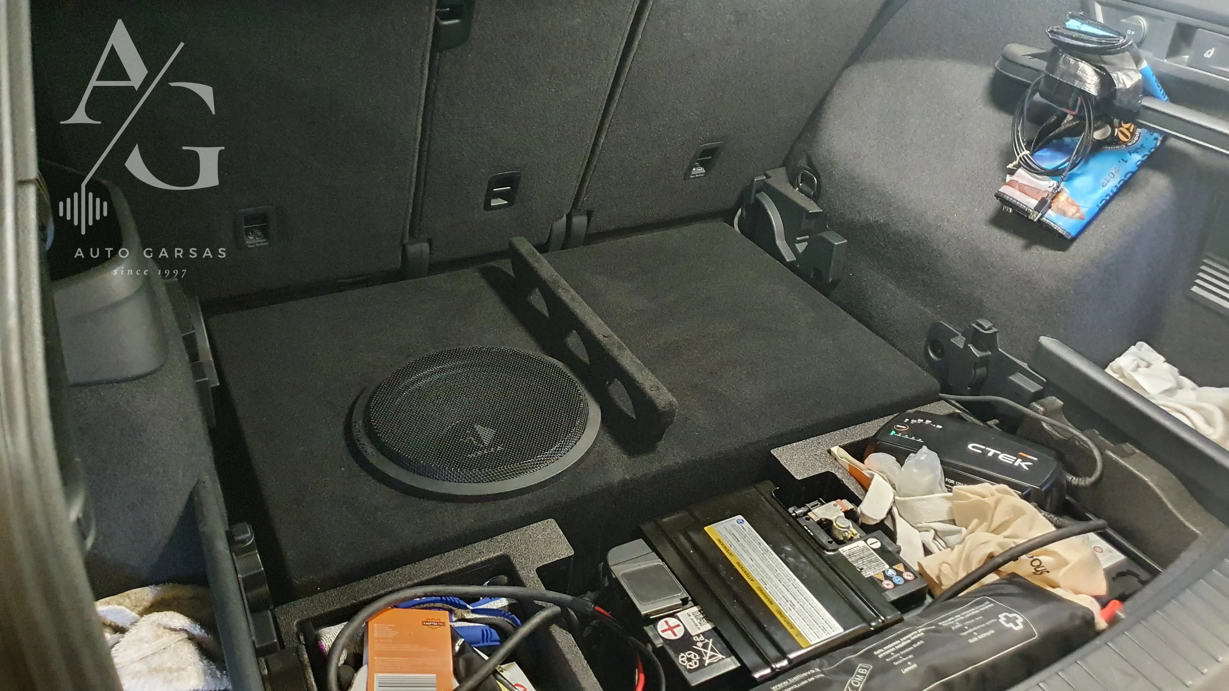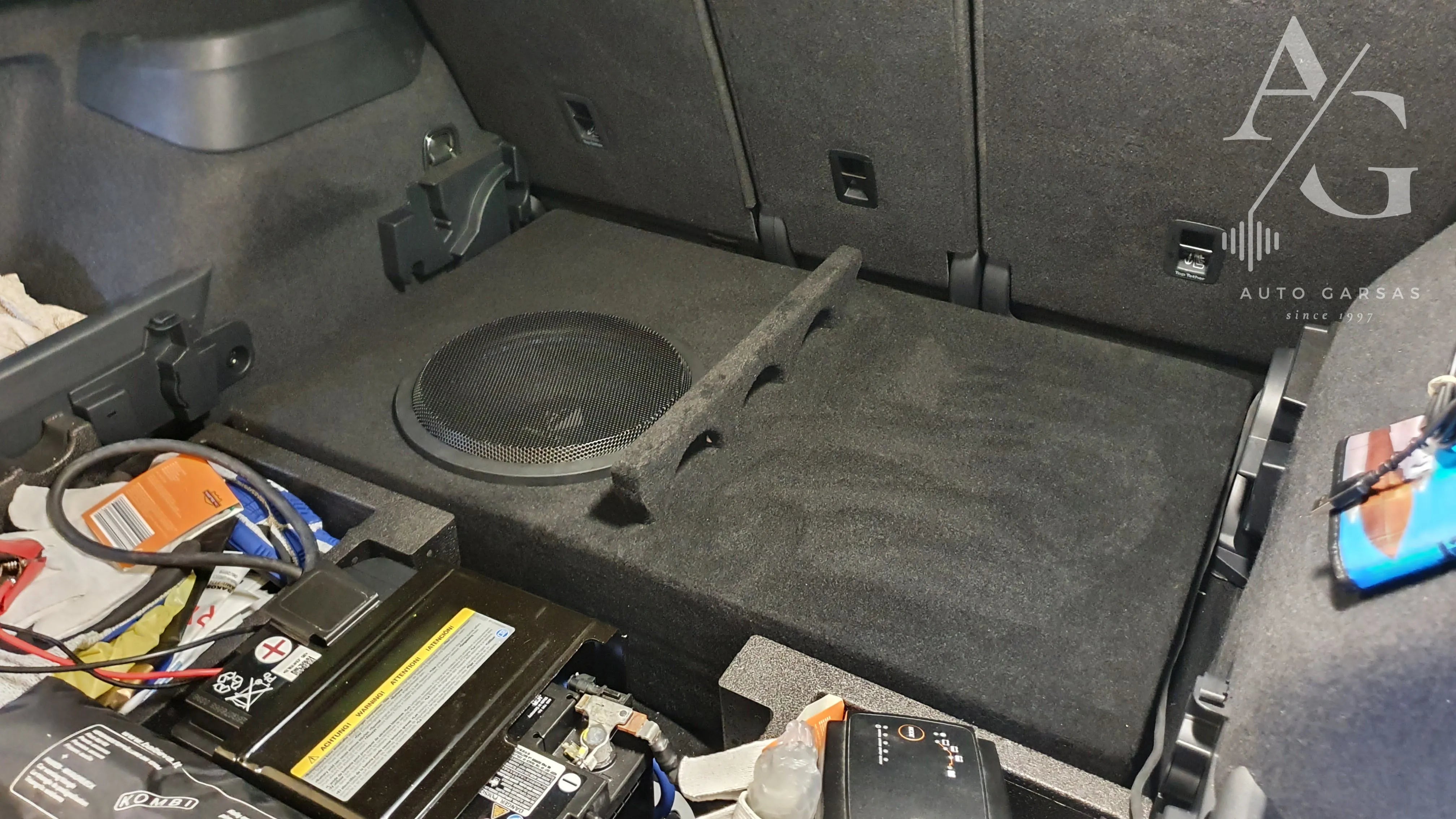 Skoda Kodiaq (2016-2023m) garso aparatūros montavimas, subvuferio gamyba, dalinė garso izoliacija