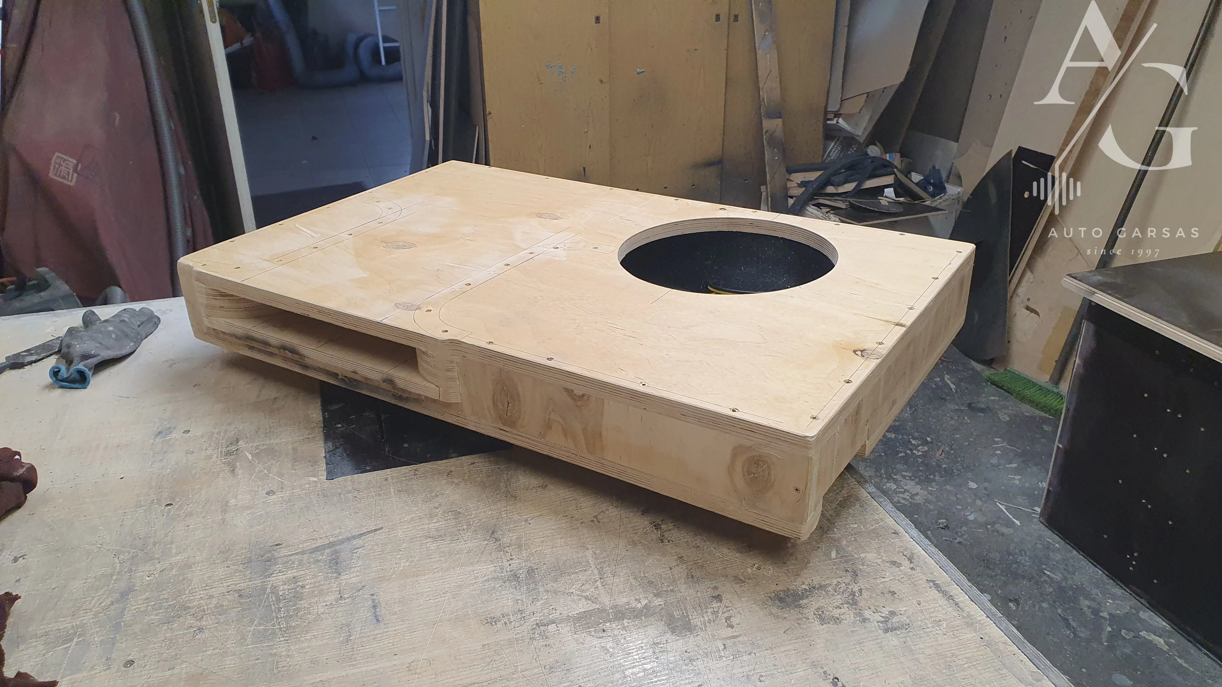 - Pagaminti podiumai durelių trikampėliuose aukštų dažnių garsiakalbiams bei žiedai durelių viduje Focal wooferiams.