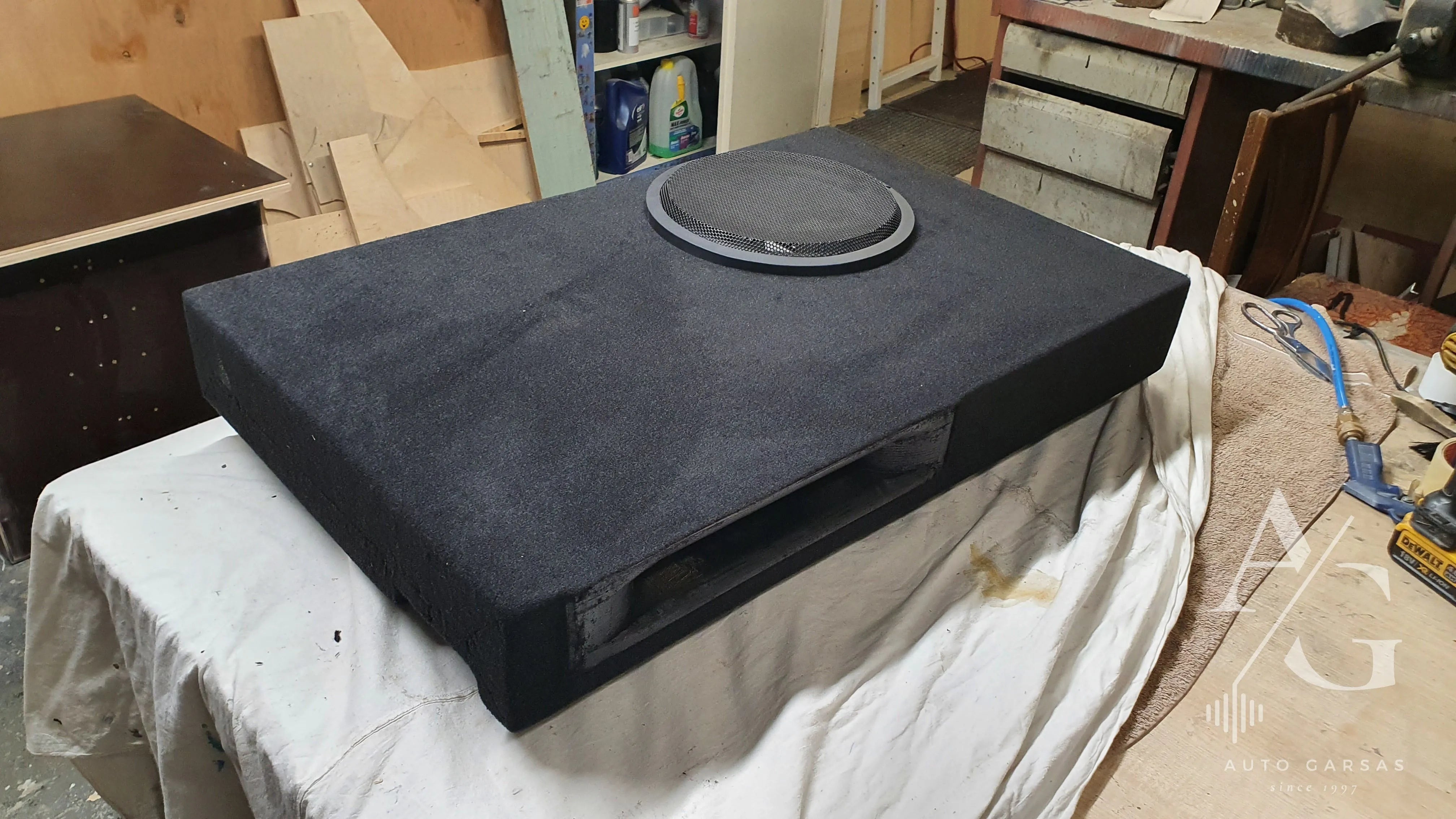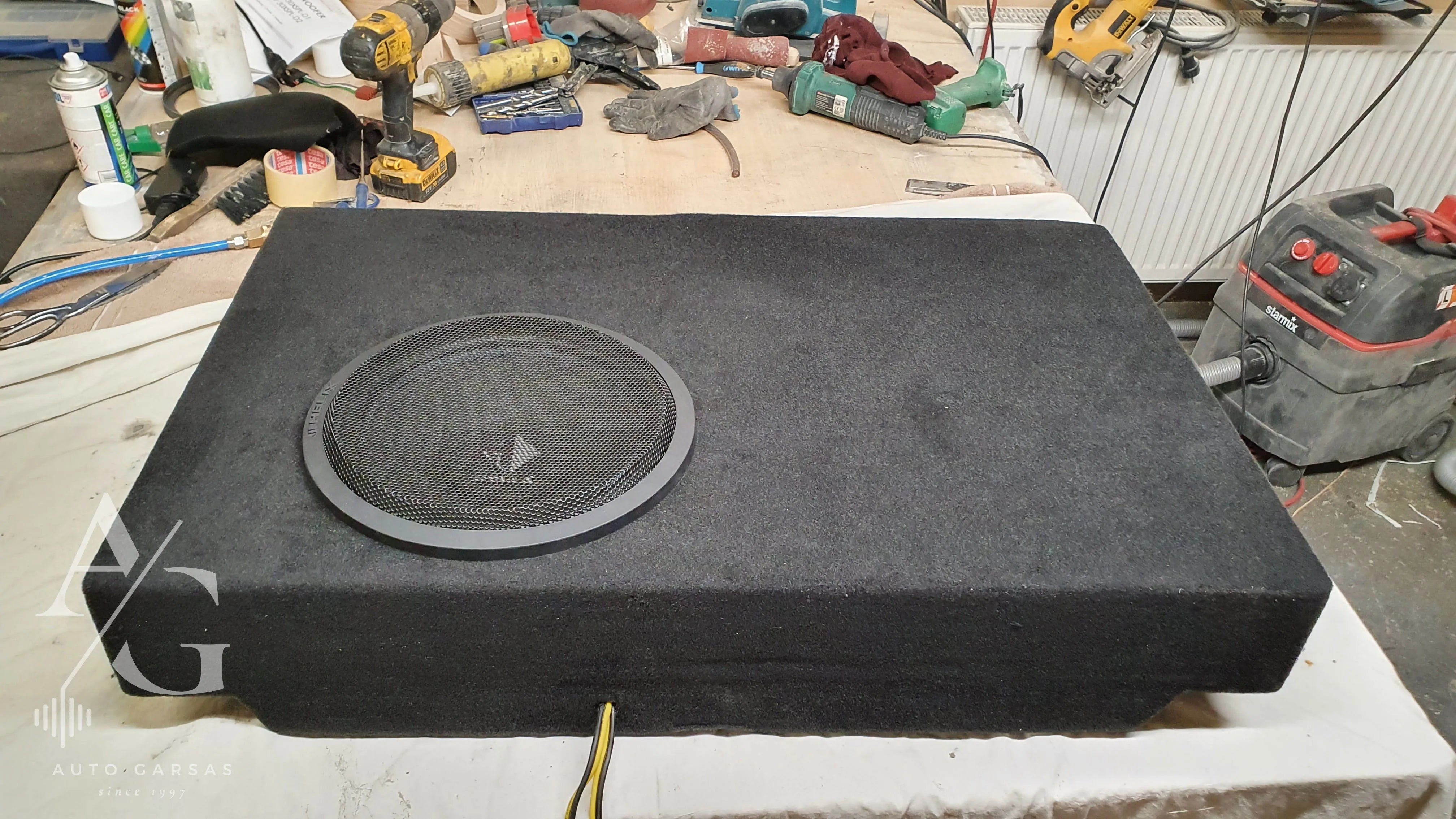 - Sukurta individuali boso dėžė bagažinėje po galiniu dangčiu su fazo invertoriumi, kad žemų dažnių slėgis efektyviai pasiektų saloną.