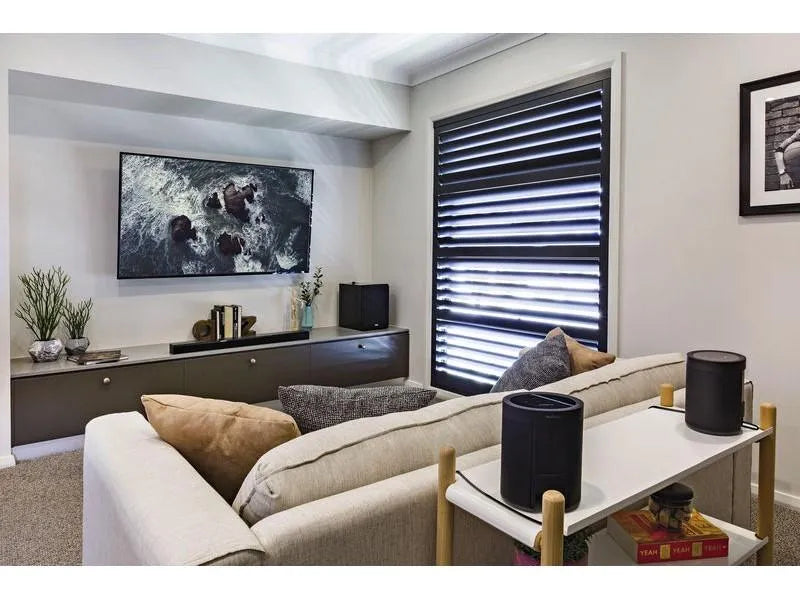 The slim profile allows for discreet placement in front of flat panel televisions without obscuring the screen.