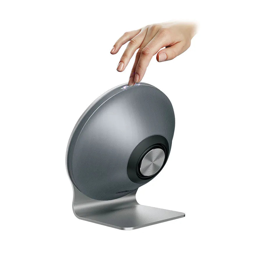Durable design with a sophisticated modern appearance, Sound Dish adds a level of appeal to any bedroom, office, or lavish living space. The aluminum pedestal of Sound Dish is a perfect fit on an end table, bookshelf, desk, or any open-air surface. Sound Dish seamlessly blends into the decor of any environment until you unleash this beast’s powerful, crisp, crystal clear audio.