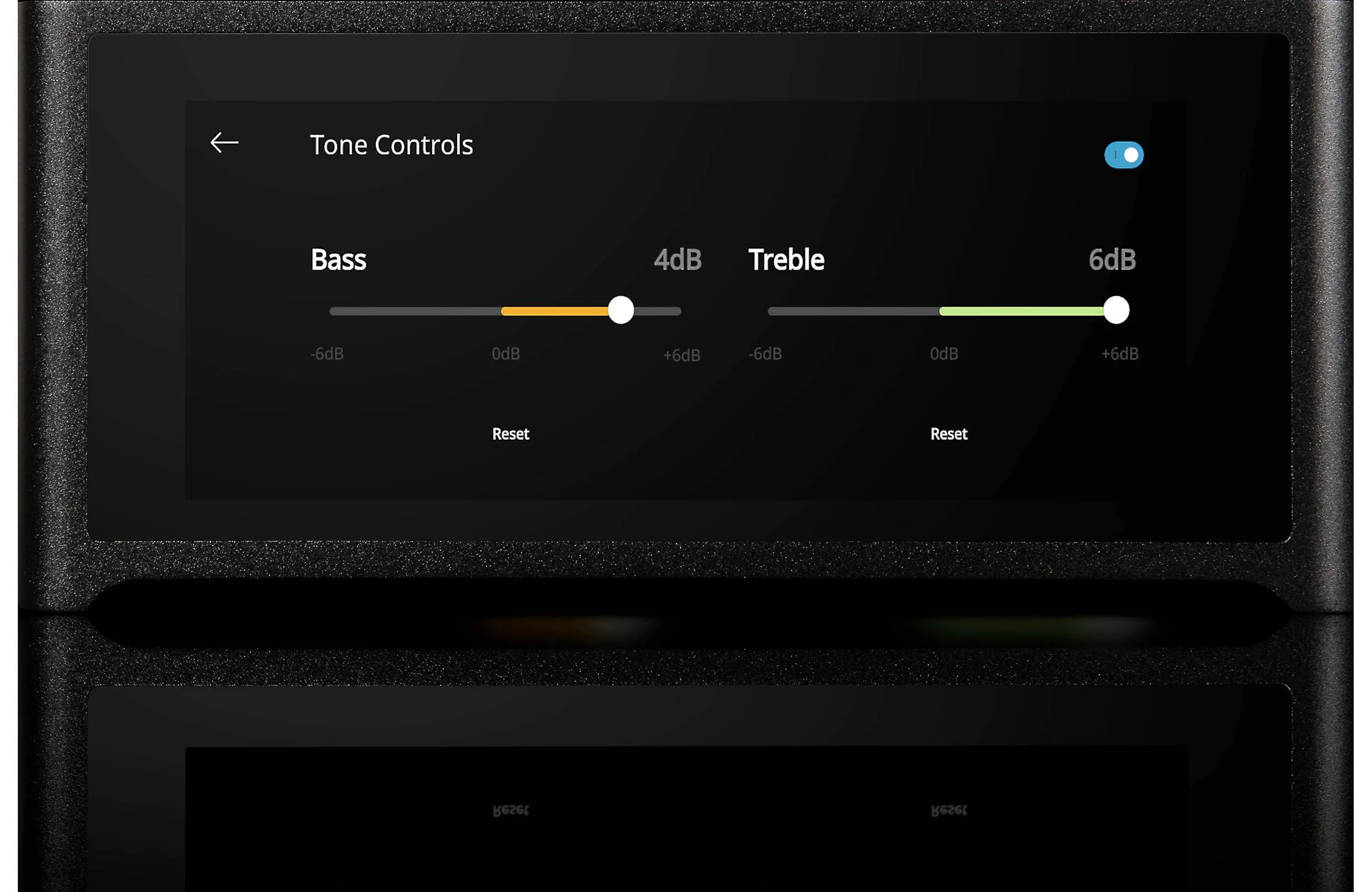 With Industrial Design by award winning design firm DF-ID, the M10 takes a minimalist theme to new levels of elegance. The slender proportions are enhanced by authentic materials including solid brushed aluminum and smooth glass. Completely operable by Wi-Fi connection to the BluOS App, one need never touch the M10 in order to listen to your favourite songs. As you approach the M10, the high-resolution touch screen beckons as the graphic changes from ‘now playing’ to ‘control panel’ allowing many operations directly from the front panel without opening an app. It also shows what’s currently playing and what is coming up next in the play queue.