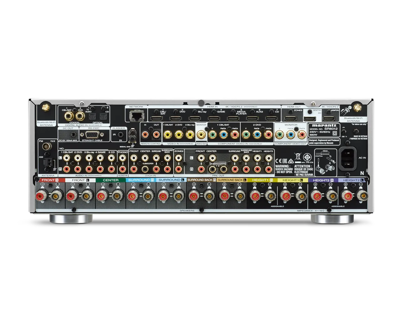 8 HDMI įėjimai, iš kurių vienas - priekyje, sukuria pažangią SR6012 vaizdo apdorojimo sistemą. HDMI jungtys palaiko naujausius formatus ir protokolus, tokius kaip 4K Ultra HD 60Hz vaizdo raiška, 4:4:4 Pure Color, BT.2020 bei HDR. Taip pat įdiegtas ir Dolby Vision palaikymas. HLG (hybrid log gamma), naujas HDR formatas, bus prieinamas su programinės įrangos atnaujinimu.