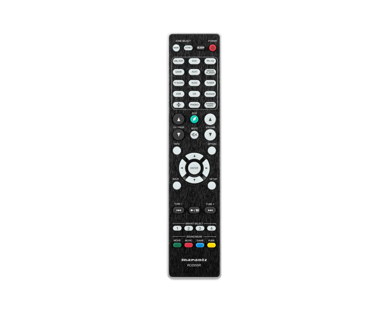 4 Smart Select mygtukai ant valdymo pulto leis greitai ir patogiai įsiminti Jūsų pasirinktus šaltinius, garso lygį ir pan. Vienu mygtuko paspaudimu grįšite į pasirinktą vietą.