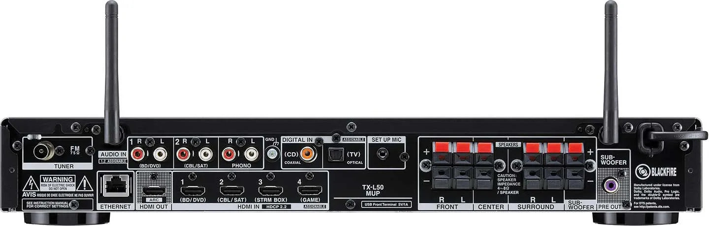 There’s a path to immersive surround-sound that won’t result in a messy living space, and it’s called the TX-L50. Slim, smart, and ready to fit into your existing furniture, the receiver cleans up cable clutter by integrating your players into the TV via one HDMI®, and by letting you cast music wirelessly from smartphone apps in seconds. Lush, cohesive sound transforms daily entertainment, from TV shows to LP records, thanks to responsive six-channel amplification. With the addition of a compact speaker set, cinema magic is on tap with simple playback control to help to melt stress away.