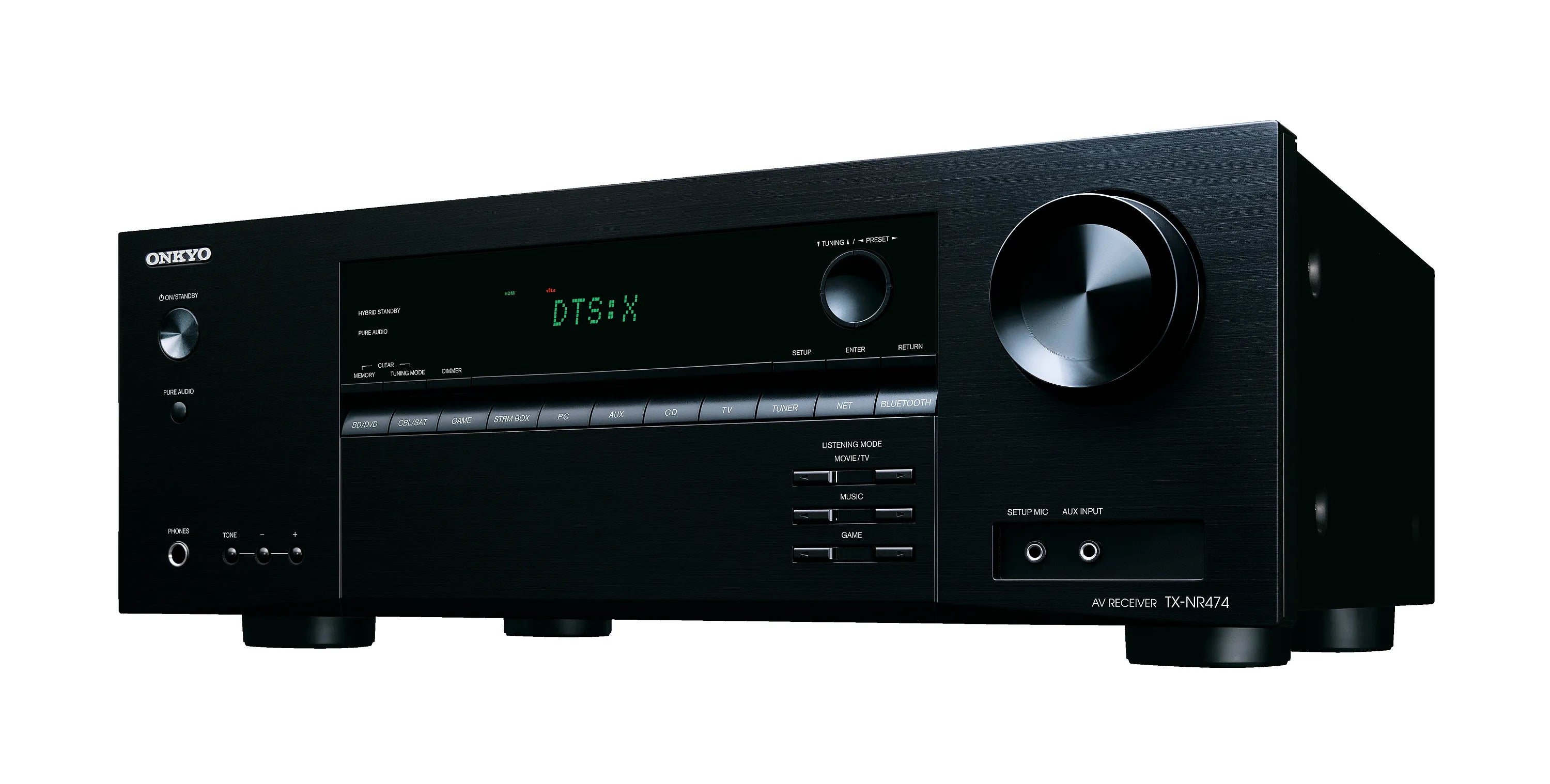 Built on a high-current amp system that effortlessly drives four-ohm speakers, the TX-NR474 has muscle to boost enjoyment of sound, whether it’s music, a movie soundtrack, or the Sunday football. Experience the magic of Dolby Atmos®* and DTS:X® enhancing 4K movies encoded with HDR10 or Dolby Vision™ via compatible Ultra HD Blu-ray Disc™ players thanks to the receiver’s 4K HDR pass-through function. You can share your music to supported wireless speakers over FlareConnect™*, while dual-band Wi-Fi® provides stability for Chromecast built-in*, DTS Play-Fi®*, AirPlay, and streaming services such as Spotify®. With a slick GUI and Onkyo Controller app, operation is simple. So sit back, relax, and let the sound of happiness wash over you.