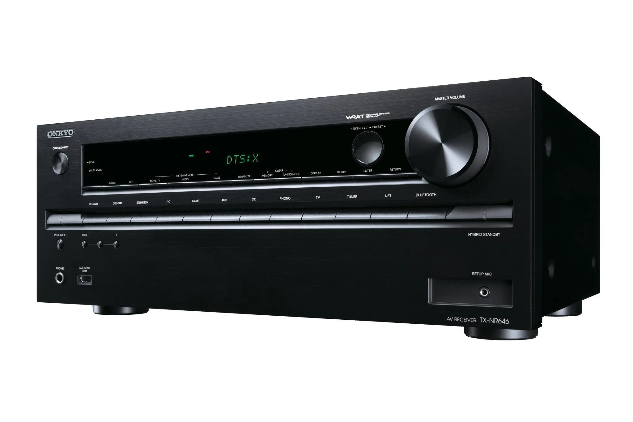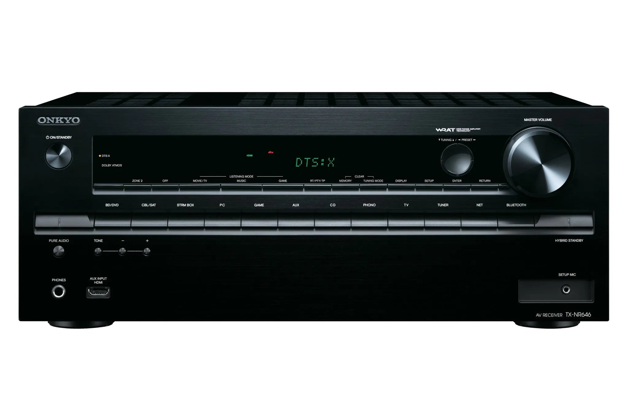 Experience the cutting edge of home cinema with the 7.2-channel TX-NR646 Network A/V Receiver, the first in its class to feature the revolutionary DTS:X™ and Dolby Atmos® multi-dimensional audio formats. Onkyo’s high-current amplification system drives your speakers to reproduce soundtracks with maximum impact and fidelity at 160 W/Ch. UltraHD video capability is equally impressive, with eight HDMI® terminals including dedicated HDCP 2.2 compatible inputs for premium 4K video content and two HDMI outputs for video in separate rooms. The TX-NR646’s high-grade 384 kHz/32-bit AKM DAC not only brings movies to life, but your Hi-Res and streamed music as well. Conveniently stream music over built-in Wi-Fi®, Bluetooth, AirPlay, or internet music services including Spotify Connect and Deezer. Use the free Onkyo Remote app to stream audio stored on your mobile device, browse and select tracks from online services, and control playback in two zones. Plus, for fans of vinyl, the TX-NR646 has a phono equalizer input to connect a turntable.