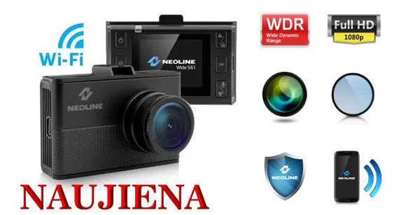 Vaizdo registratorius Neoline Wide S61 su saulės atspindžių slopinimo filtru, bei Wi-Fi sąsaja