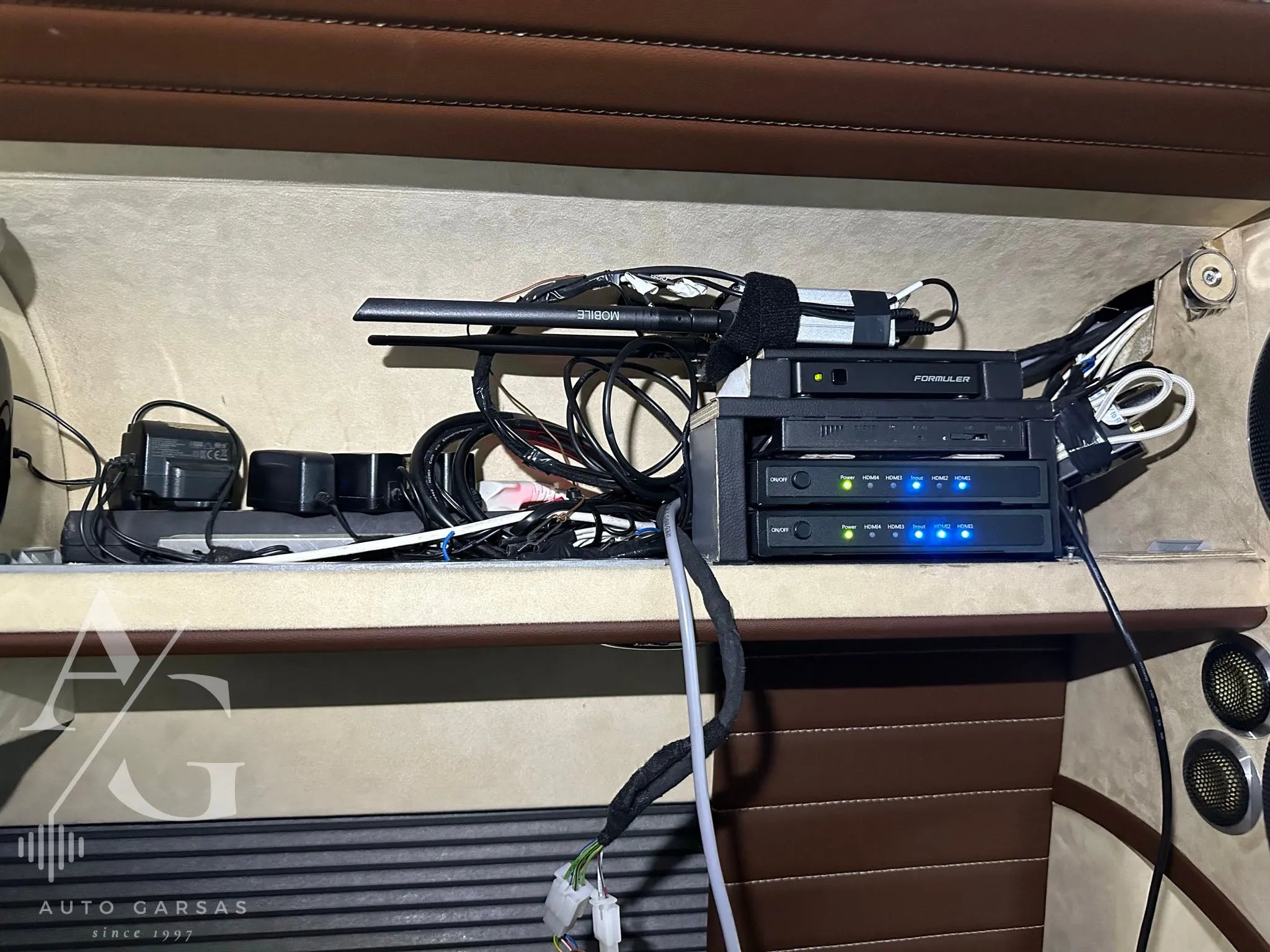 - Papildomai sumontuoti du HELIX stiprintuvai, valdantys visą garso sistemą