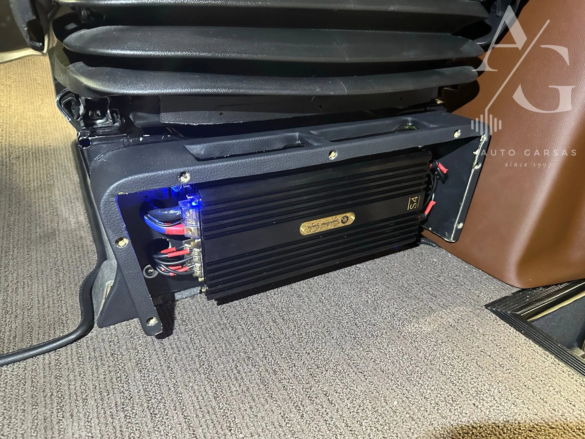 - Po keleivio sėdyne integruotas DLS 4 kanalų stiprintuvas