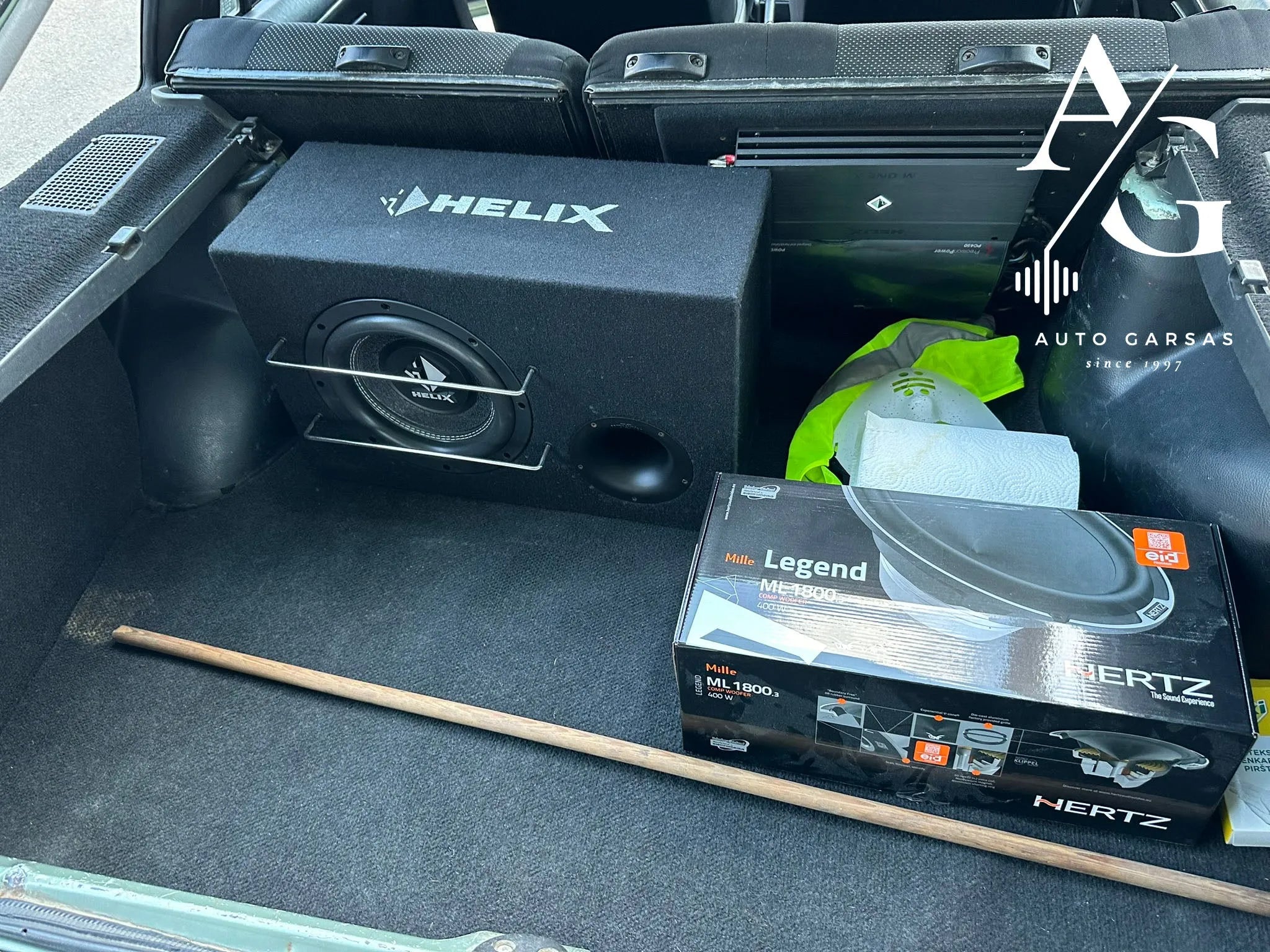 - Sumontuotas DLS 4 kanalų stiprintuvas, Helix monoblokas ir Helix 25 cm žemų dažnių garsiakalbis, suteikiantis galingą ir tikslų bosą.