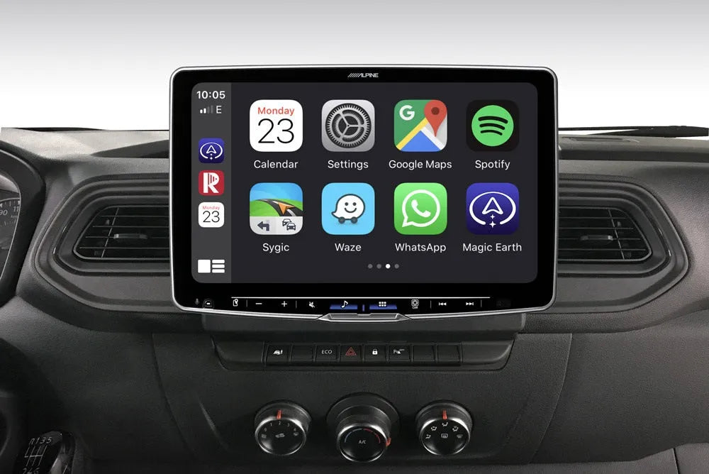 Комплект KIT-RE-MA32 позволяет вам идеально интегрировать навигационную систему Alpine или цифровую медиастанцию в ваш Renault Master 3, Opel Movano или Nissan NV400.