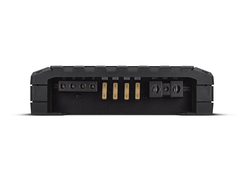 Усилитель разработан таким образом, что элементы управления звуком расположены на боковых панелях, а не на верхней, что облегчает доступ к регуляторам усиления и переключения при установке усилителя под сиденьями автомобиля или в неглубоких местах. Для закрытия боковых элементов управления и разъемов добавлены съемные задние крышки, обеспечивающие аккуратный и удобный внешний вид усилителя.