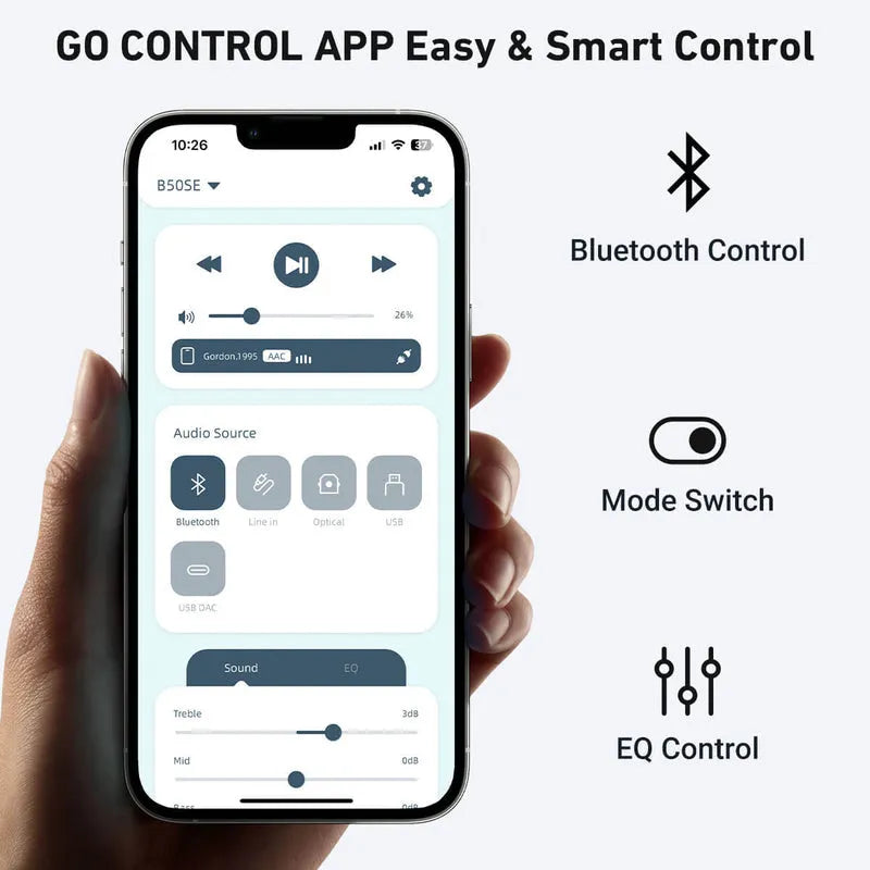 - Бесплатное приложение Go CONTROL для iOS и Android с эквалайзером.