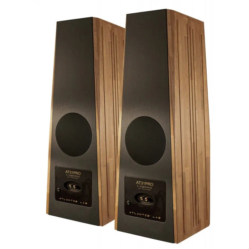 AT31 — это большая напольная акустическая система с соответствующими характеристиками. Она трёхполосная, но при этом оснащёна четырьмя динамиками. В верхней части расположен твитер с компрессионной камерой, работающий на сверхмощном неодимовом магните, который обеспечивает исключительную чувствительность — более 100 дБ у AT31 — сохраняя при этом утончённость и детальность звучания. Над ним, впервые в линейке Atlantis Lab, расположен отдельный 16-сантиметровый среднечастотный динамик. Басы воспроизводятся мощным 31-сантиметровым фронтальным динамиком в сочетании с 26-сантиметровым тыловым динамиком. Такая конструкция, отличительная черта Atlantis Lab, сочетает в себе высокую чувствительность, компактную конструкцию и очень низкочастотный диапазон. Низкие частоты частотой 28 Гц по-настоящему грохочут, когда фронтальный динамик с его молниеносным откликом включается в работу.