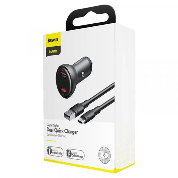 Цифровой дисплей BASEUS + USB-C, автомобильное зарядное устройство + кабель
