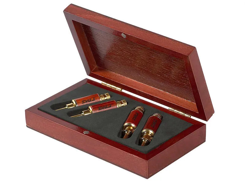 Dali 4 BANANAS - ДЕРЕВЯННАЯ КОРОБКА, 4 банановых штекера - Перед покупкой, пожалуйста, уточните наличие товара. Если его нет, его можно заказать, и он будет доставлен в течение 2–21 дня.
