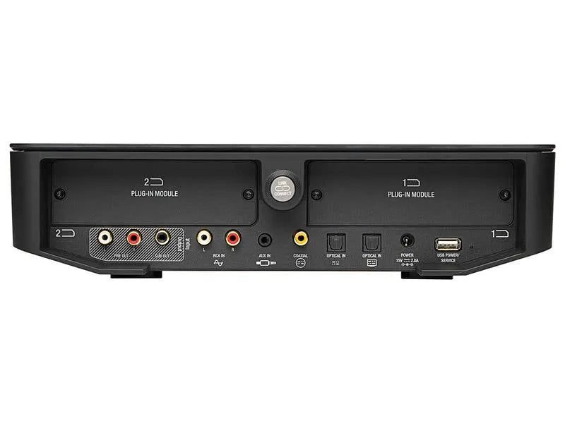 Встроенный порт USB A обеспечивает выходной ток 5 В и 1 А для питания подключенных устройств, таких как Google Chromecast Audio, или зарядки мобильного устройства во время воспроизведения. Он также используется для обновления прошивки Sound Hub. Встроенный порт USB не позволяет воспроизводить аудиофайлы, хранящиеся на подключенном устройстве.
