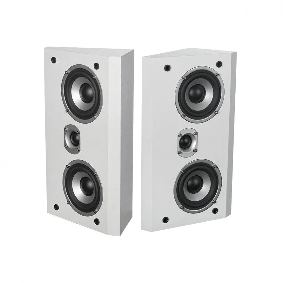 Dynavoice Magic FX-4 благодаря своему уникальному дизайну и углу наклона 28,8 градуса — это идеальная акустическая система объемного звучания. Угол наклона и кронштейны позволяют устанавливать акустику как горизонтально на потолке, так и вертикально на стене, адаптируя её под желаемую конфигурацию. Каждая акустическая система оснащена двумя 4-дюймовыми комбинированными НЧ/СЧ-динамиками и твитером Super Audio.