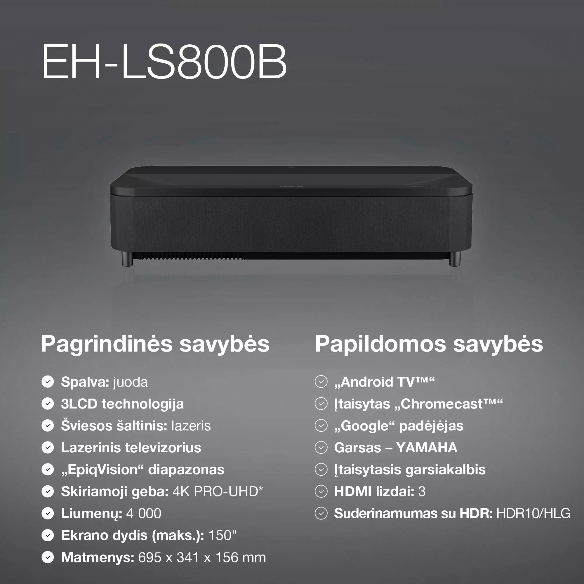 Epson EH-LS800B, ультракороткофокусный проектор