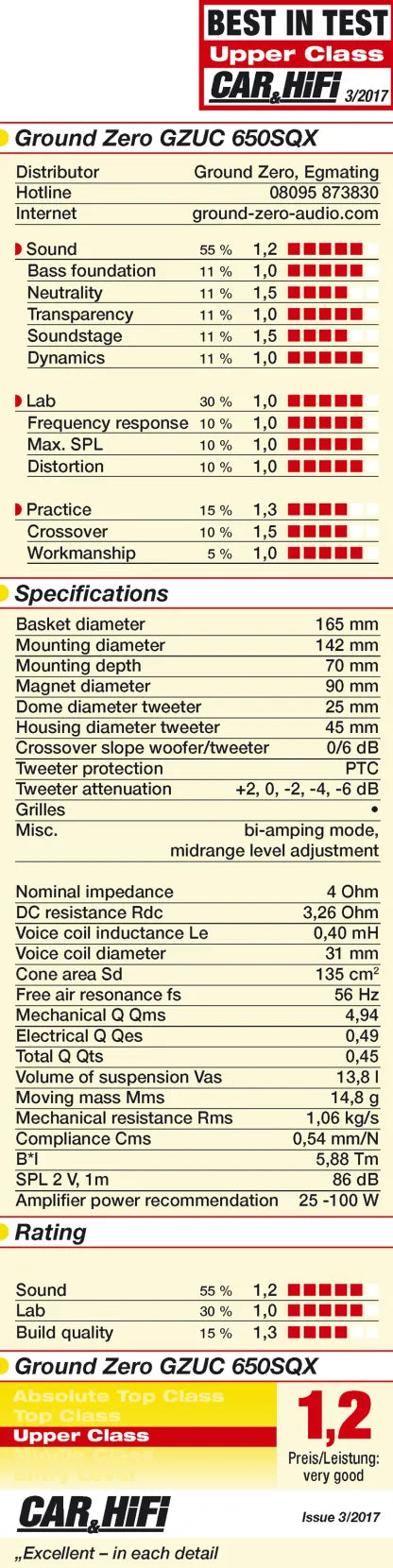 Акустические системы Ground Zero GZUC 650SQX, 16,5 см, компонентные, 220 Вт, 2-полосные. - Перед покупкой, пожалуйста, уточните наличие товара. Если его нет, его можно заказать, и он будет доставлен в течение 2–21 дня.