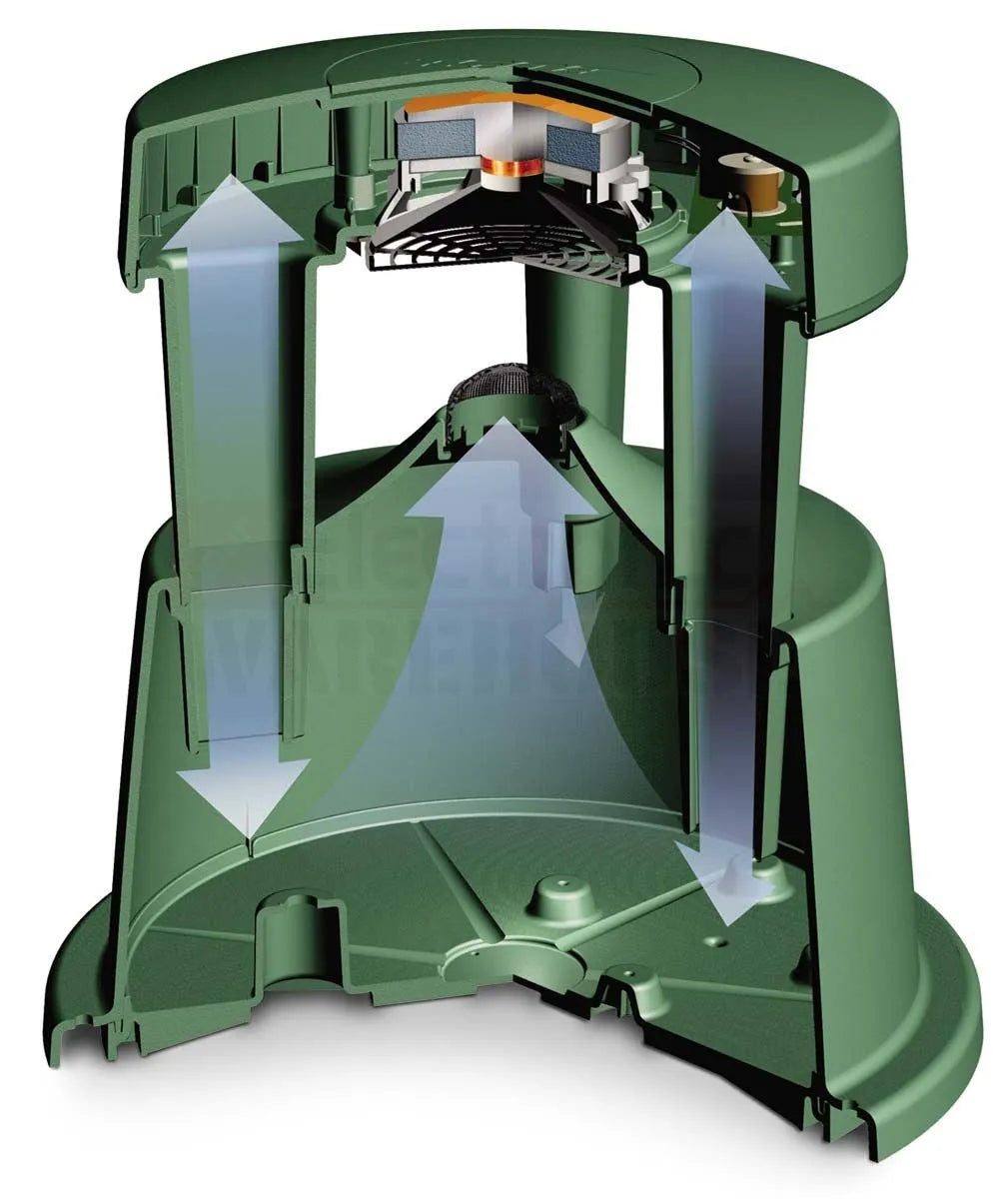 Они устойчивы к влаге и другим погодным условиям. Они идеально вписываются в окружающую обстановку и создают великолепный, чистый и ясный звук, распространяющийся как по горизонтали, так и по вертикали с углом распространения звука 360 градусов.