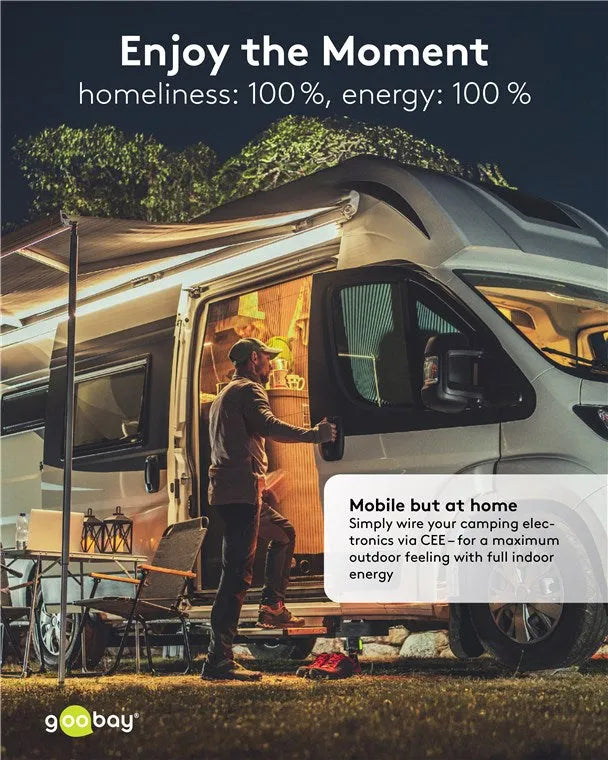 - В зависимости от местных требований безопасности его можно использовать как адаптер CEE для автодомов, караванов и кемпингов или на территории кемпинга.