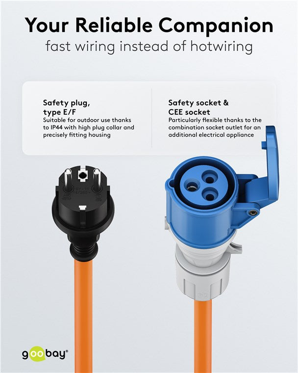 Кабель-адаптер Goobay CEE, наружный силовой кабель (тип E/F), 230 В, 16 А, 5 м - Перед покупкой, пожалуйста, уточните наличие товара. Если его нет, его можно заказать, и он будет доставлен в течение 2–21 дня.